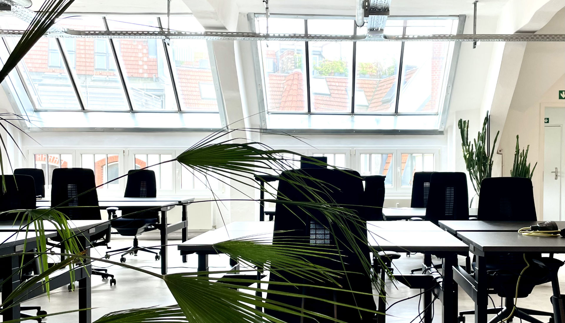 We occupy the building from the 1st floor to the top floor and offer spacious, light-flooded office floors with 16 to 24 workstations, individual, modern layouts with their own meeting rooms, phone booths and full service.